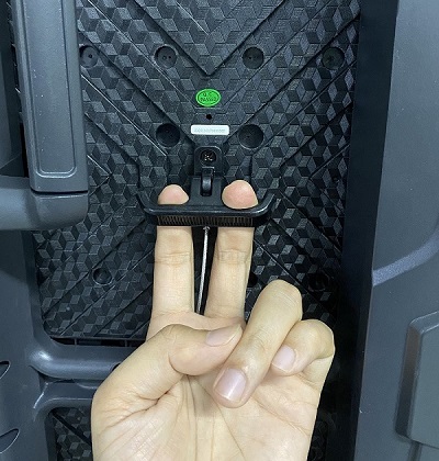 නඩත්තු කරන අතරතුර LED මොඩියුලය පහළට වැටීම වළක්වන රැඳවුම් කේබලය කැබිනට්ටුවට LED මොඩියුලය අමුණන්න